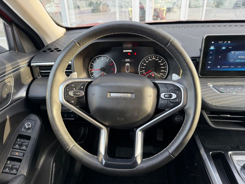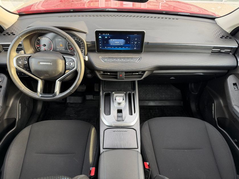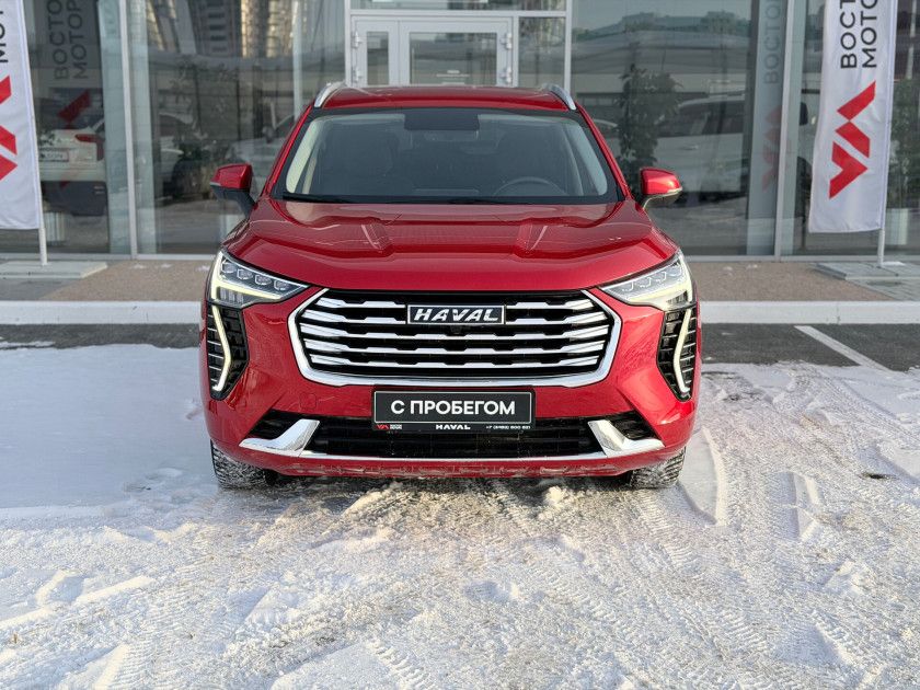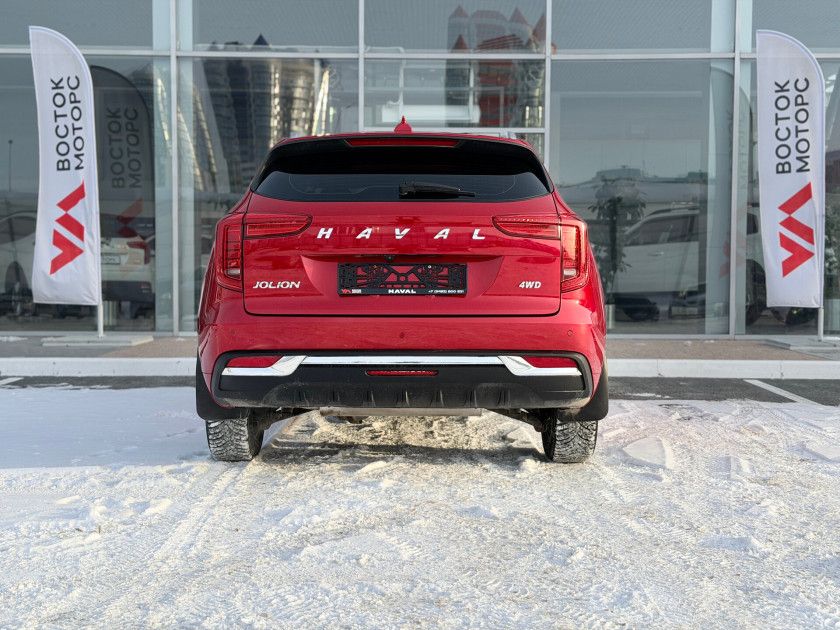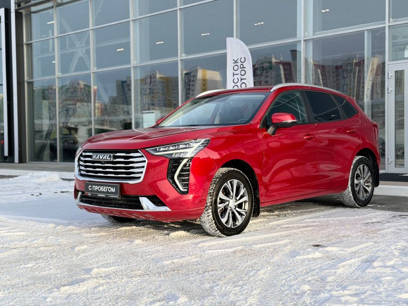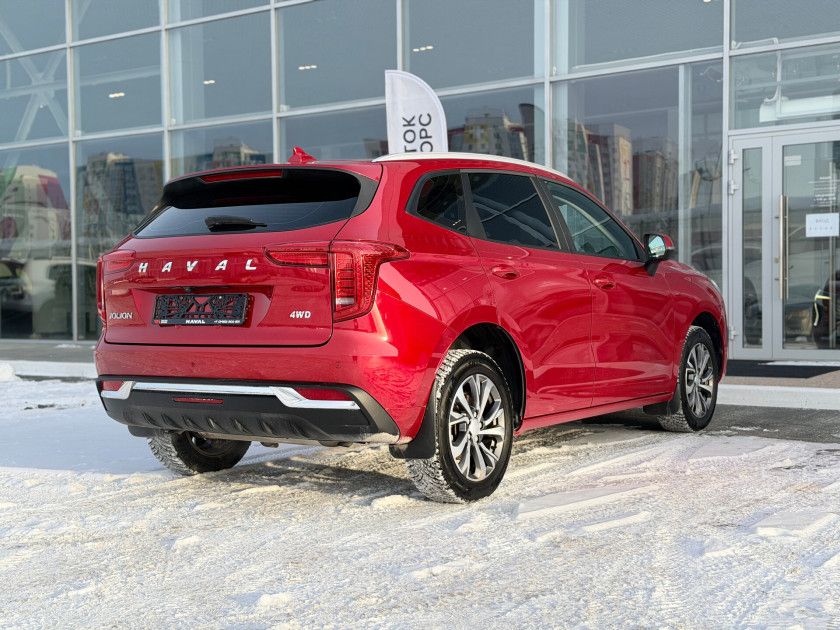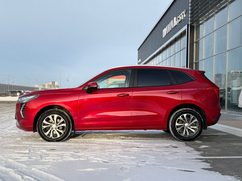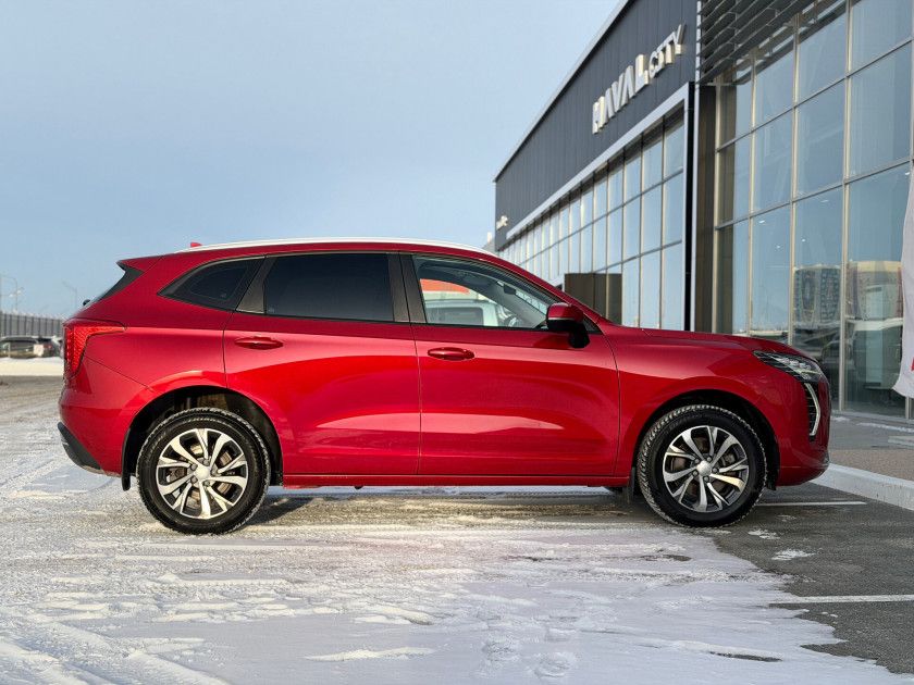 Haval Jolion I 2023 года — практичный внедорожник с пятидверным кузовом, который подойдёт как для городских поездок, так и для путешествий за город. Красный цвет и декоративные молдинги придают автомобилю выразительный вид, а рейлинги на крыше и легкосплавные диски диаметром 18 дюймов добавляют стиля.